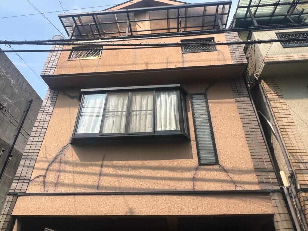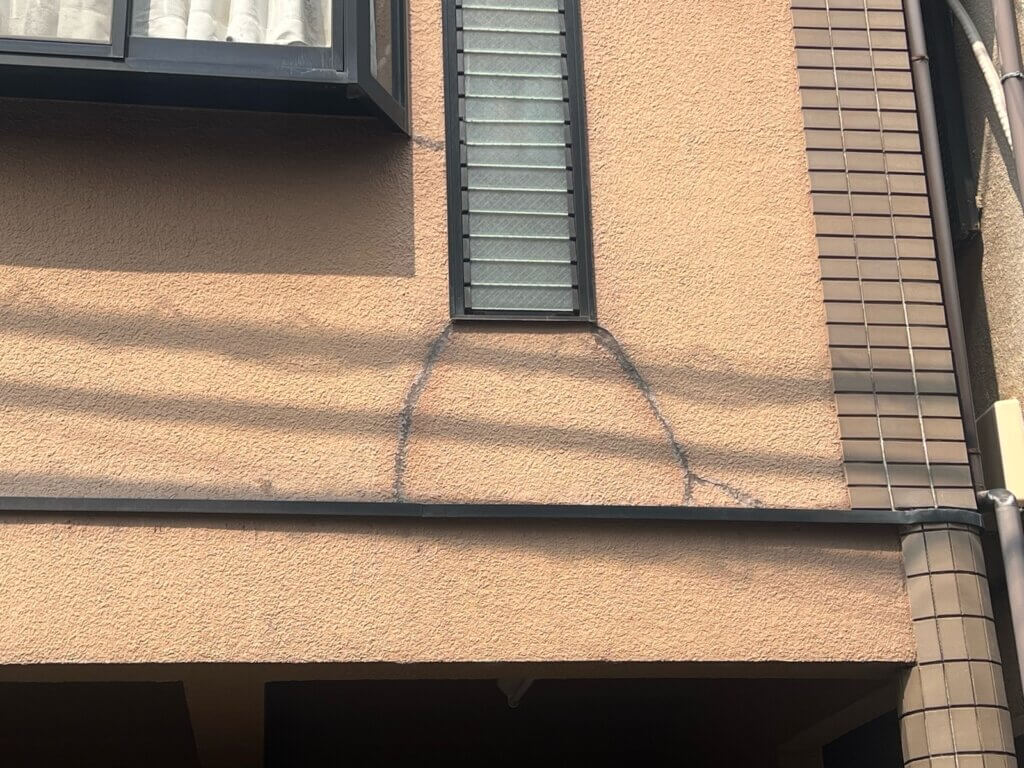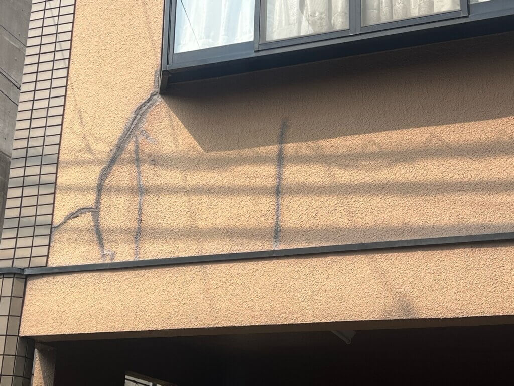 数年前の地震で外壁に多数のひび割れが発生していました。